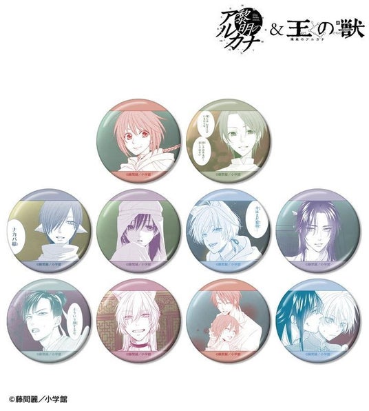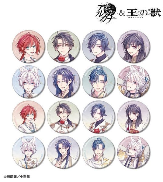 ナカバ 、シーザ、ロキ、アーキル 、藍月、天耀、太博、蘇月の印象的なシーンをメタリック仕様の缶バッジに仕上げました。