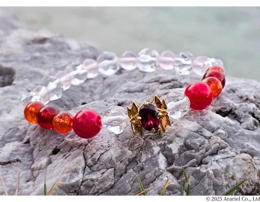 天然石とジュエリーの融合と共生をテーマに生まれた天然石ジュエリーブレスレット【M-Crystal】。こちらは日本の神様のエネルギーを宿した「天照大神モデル」