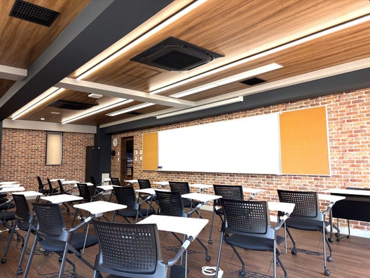 最新の施設・設備を完備した新校舎は、AI・ITを学ぶためにつくられたユニークなデザインを取り入れており、エントランスホールは開放感のある吹き抜け構造、入口すぐの大階段横はリラックスできる憩いのスペースになっているなど、IT企業のオフィスをイメージしたおしゃれな作りになっています。