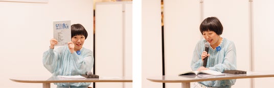 イベント中盤には、声優の冨田泰代さんが登壇しました。今年度の全ての「海ノ民話アニメーション」の声入れを、同じく声優の四宮豪さんとたった2人で担当する冨田さんに、声優というお仕事のやりがいや、海ノ民話にまつわるエピソードをお聞きしました。