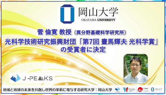 国立大学法人岡山大学(本部:岡山市北区、学長:那須保友)の高等先鋭研究院を構成する機関のひとつである異分野基礎科学研究所の菅倫寛教授が2025年1月29日、公益財団法人光科学技術研究振興財団の「第7回 晝馬輝夫 光科学賞」を受賞者に決定しました。