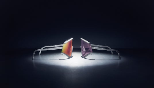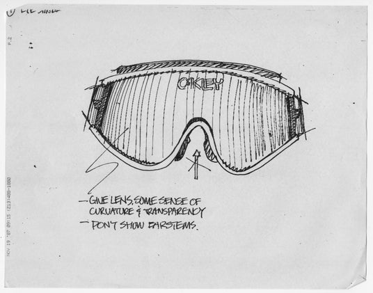 初代Eyeshade(アイシェード)は現代のようなスポーツサングラスが存在しなかったため、レンズの端から入り込む光に悩むアスリートたちの声から生まれました。当時のアイウェアの常識を破るシールドタイプのEyeshadeはコートハンガー、ゴーグルレンズ、絶縁テープというシンプルな材料でプロトタイプを制作され、その革新性が今なお語り継がれています。その独創的なデザインは、世界中のトップアスリートたちに影響を与え、現代のアイウェア業界に革命をもたらし続けています。