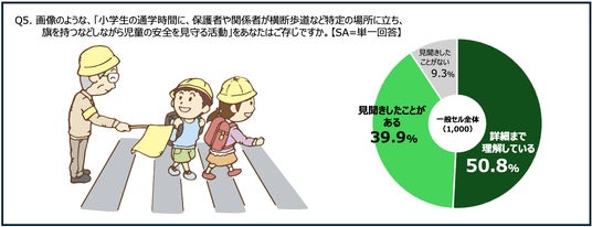 まず、 「こども見守り活動」に関する認知率は高く約9割となり、「詳細まで理解している」と答えた人は50.8%。「見聞きしたことがある程度」が39.9%、「見聞きしたことがない」が9.3%という回答となりました。