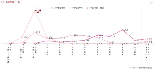 メイク品の使用率は小学生低学年で2割、中学1~2年生では5割に。幼いころから美容やメイクを楽しんでいる様子がうかがえる