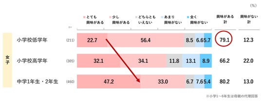 1.小学校低学年では、既に約8割がメイクや化粧品に「興味がある(とても+少し興味がある)」と回答。