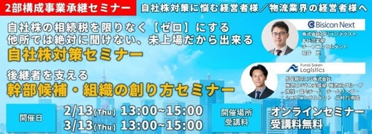2025年2月13日(木)、株式会社ビジコンネクスト様主催のセミナーにて、船井総研ロジの経営コンサルタント 三村 信明が「後継者を支える幹部候補・組織の創り方」をテーマに講演しました。