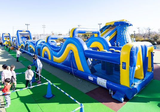 3歳から大人まで楽しめる、バルーンでできた遊具「エアータイムエキサイティングパーク」が登場!イベント初登場の巨大アスレチック“エアー・タイムラン”や大人気の“バンジートランポリン”もあり、大人も子どもも飛んで跳ねて体を動かし、最高に楽しい時間になること間違いなし。