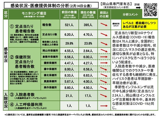 【岡山大学】岡山県内の感染状況・医療提供体制の分析について(2025年2月14日現在)