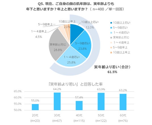 シワ治療経験者の61.5%が “自分の顔は実年齢より若い” と回答