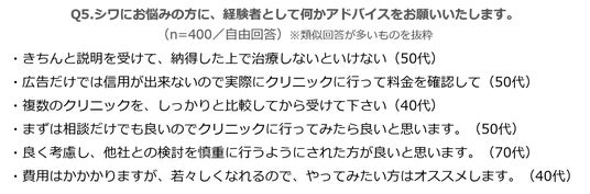 ●経験者から、シワ治療を受けようか迷っている方にアドバイス「しっかり調べて」