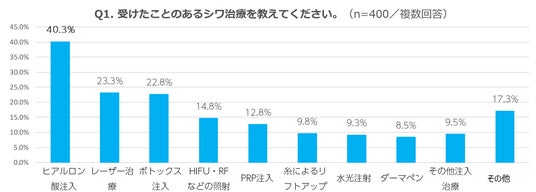シワ治療経験、ヒアルロン酸注入が最多40%超