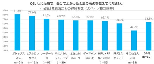 「受けてよかった」ボトックスが最多81.3%、ヒアルロン酸は77.6%