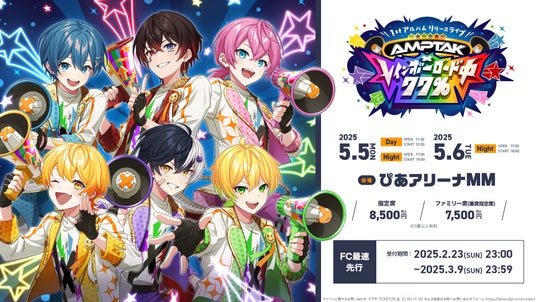 「AMPTAKxCOLORS」待望の1stフルアルバムのリリースを記念したワンマンライブが決定いたしました。初めてライブを開催した地・横浜で、過去よりもさらに大きな会場にステップアップした今回の公演は、ぴあアリーナMMでの2DAYS・全3公演という自身最大規模のワンマンライブとなります。チケットは本日より、AMPTAKxCOLORS公式ファンクラブにて最速先行受付を開始いたしました。また、今回のお知らせとともに、象徴ともいえるメガホンを持った新ビジュアルが解禁に!歌い手グループ史上最速での日本武道館公演を超満員で成功させたAMPTAKxCOLORSの次の挑戦にご期待ください!