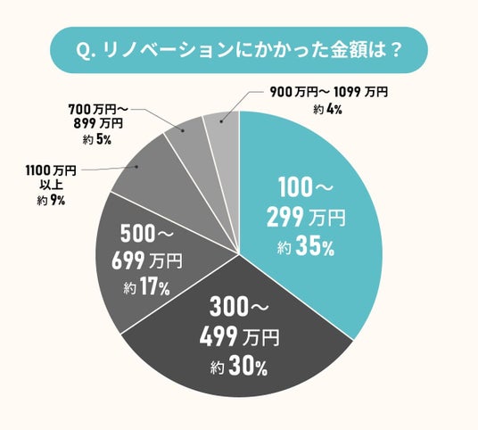 最多は「全て業者によるリノベーション」の約44%でした。次いで「ほぼ業者によるリノベーション+部分的にDIY」が約35%とこちらも多め。「ほぼDIYによるリノベーション+部分的に業者」「全てDIYによるリノベーション」も一定数いることがわかりました。
