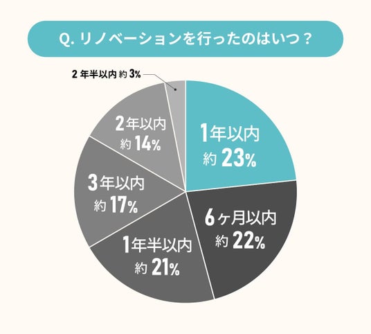古民家リノベーションを行った時期6ヶ月以内:約22%