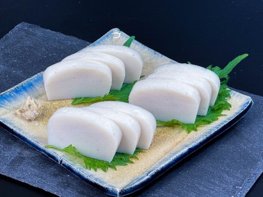 受賞作「湊(みなと)」は、伝統的な石臼製法で丁寧に仕上げた高級蒲鉾です。主原料には、上品な風味と強い弾力を併せ持つ白身魚「グチ」を厳選使用。石臼を用いることで、加工時の温度上昇によるたんぱく質の変性を抑え、なめらかで弾力のある口当たりと魚本来の旨味を最大限に引き出しました。