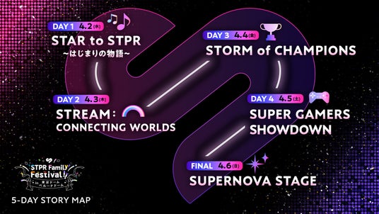 この『STPR Family Festival!!』は、東京ドームにて2日間(2025年4月2日(水)~3日(木))、ベルーナドームにて3日間(2025年4月4日(金)~6日(日))、合計5日間にわたりSTPR所属クリエイターが出演し開催するSTPR史上初かつ最大級のフェスイベントです。