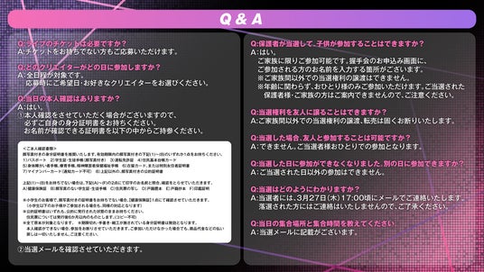 ・応募後・ご当選後の日程変更の日程変更、メンバー変更はできません。