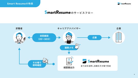 転職エージェントの書類作成業務を大幅効率化!AIが1分で履歴書・職務経歴書・紹介状を自動生成する「Smart Resume」