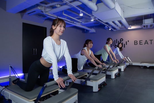 現在、暗闇の中で音楽に合わせてマシンピラティスを楽しめるフィットネススタジオ「Beat Pilates(ビートピラティス)」が特に人気を高めており、2024年7月1日に秋田県で誕生してから1年を経たずして8店舗に増加と急拡大中です。(2025年6月 広島県福山市に新店舗オープン予定)