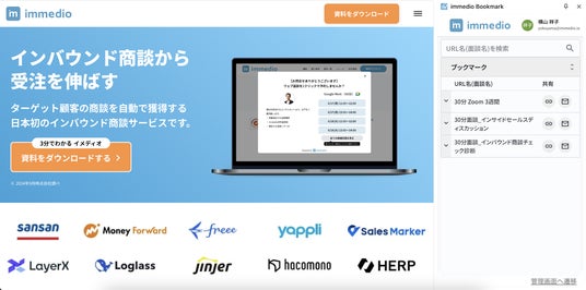 商談設定の業務効率化を追求するimmedioがGoogle Chrome拡張アプリ「immedio Bookmark」提供開始