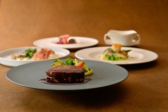 甘みが際立つ春キャベツを合わせて香り高く仕上げた魚料理と、フレンチの伝統的なソースでアレンジした国産牛サーロインのポワレの2つのメインディッシュが贅沢なひとときを演出いたします。