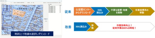 登記所備付地図データの利用者は年々増加しており、今回リリースする最新版では当データの読み込みに特化した機能を新設。読み込み手順を大幅に簡素化し、従来の約80%の時間削減を実現いたしました。土地の登記簿に基づく公的な地図情報であるため、特に不動産に関わる業務や行政、用地測量の計画時、登記業務の従事者において、飛躍的な生産性向上を支援します。