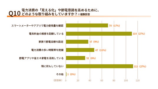 また「家族で節電目標を設定」(9%)や「電力消費の多い時間帯を把握」(11%)など、家庭全体で節電に取り組む動きも見られました。