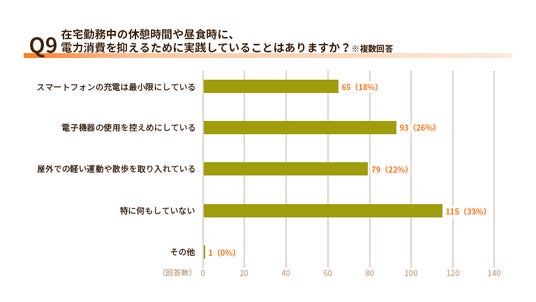 Q9. 在宅勤務中の休憩時間や昼食時に、電力消費を抑えるために実践していることはありますか?※複数回答