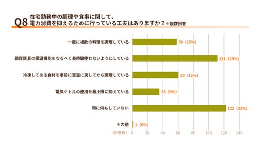 Q8. 在宅勤務中の調理や食事に関して、電力消費を抑えるために行っている工夫はありますか?※複数回答