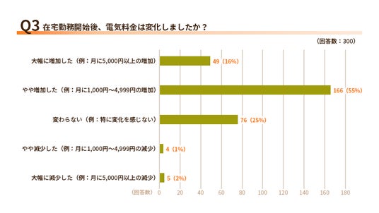 Q3. 在宅勤務開始後、電気料金は変化しましたか?