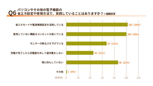 Q6. パソコンやその他の電子機器の省エネ設定や使用方法で、実践していることはありますか?※複数回答