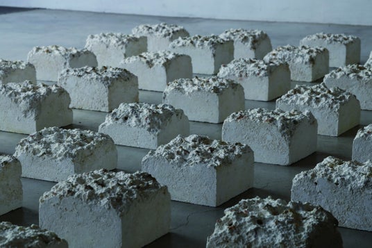 半澤友美, note, 15×15×6 cm(高さは作品により変動), 木材パルプ ・楮・顔料・漆喰・金網, 2020 | aaploit