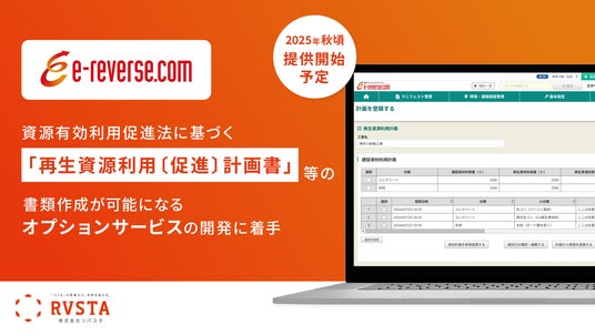 リバスタ、「e-reverse.com」上で「再生資源利用〔促進〕計画書」等の書類作成が可能になるオプションサービスの開発に着手
