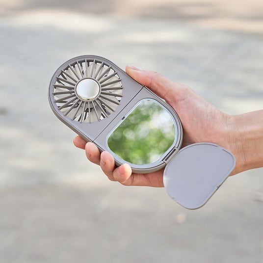 上部にファン、下部にライト付きミラーを搭載。スマホスタンドとしても使えます。