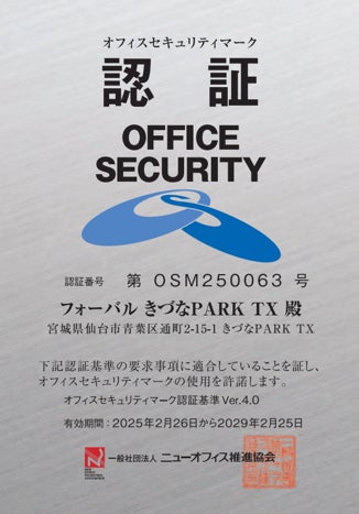 「きづなPARK TX」オフィスセキュリティマーク認証取得のお知らせ