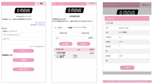 QUADRACのQ-moveサイトにアクセスし、「マイページ」の会員登録手続きが完了しますと確認可能です。
