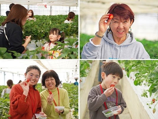 参加者は収穫したイチゴを試食し、「自分で選んで摘んだイチゴはいつもより特別感があります」「子供は今日が初めてのイチゴ狩りです。家族で楽しめたので、素敵な思い出になりました」「イチゴ狩りの時間も長かったので、満足いくまでお腹いっぱい食べられました」「イチゴがこのように育っていることを子供に見せられたので、食育にも繋がりました」など、イチゴの甘い香りとともに参加者の笑顔で包まれました。