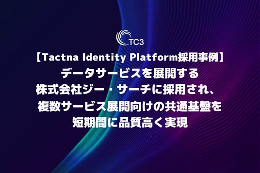 必要なスキルを必要な時間活用する、成長著しいギグエコノミーを活用したデジタルサービス開発を提供するTC3株式会社(以下、TC3、本社:東京都千代田区、代表取締役:須藤 義人)は、複数のデータサービスを展開する株式会社ジー・サーチ(以下、ジー・サーチ、本社:神奈川県川崎市幸区大宮町1番地5)に、TC3が提供するカスタマーエンゲージメントハブ、「Tactna Identity Platform」(タクトナ アイデンティティ プラットフォーム 以下、Tactna)が採用・導入されたことを発表します。