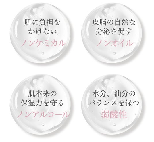 野生のダマスクローズ花水を贅沢に配合し、肌を引き締めハリとうるおいを与えます。