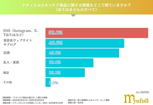 そこで今回、自然由来のスキンケアブランドミューフル(https://myufull.co.jp/)を販売する株式会社美幸コーポレーションは、ナチュラルコスメを利用している、30代~40代前半の女性を対象に、「スキンケア商品の選び方」についての調査を実施いたしました。