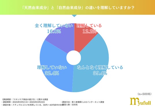 続いては、ナチュラルスキンケア商品で表記される「天然由来成分」と「自然由来成分」の違いについて、どれくらいの方が理解しているのかを聞いてみました。