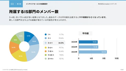 IS部門のメンバー数は平均7.0名、社会人経験も平均9.5年と 調査以来、過去最低を更新。