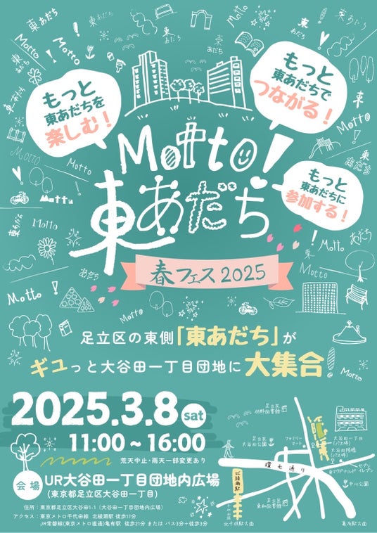 有限会社三幸も企画から携わるイベント、Motto!東あだち<春フェス2025>が2025年3月8日(土)に開催されます。東あだち区域を盛り上げていこう!という想いのもと、コミュニティラウンジBOOKMARKさんと地域の方が、一から全て企画して作り上げています。インスタでもその様子がご覧いただけます。