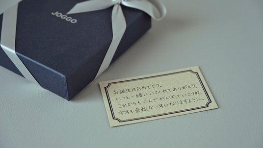 ジョッゴが運営するブランド「JOGGO」のアイテムは、カラーを自由にカスタマイズできることから、お客様から大切な人へのギフトアイテムとしても選ばれています。相手を想いながら色を選んだアイテムに、「手漉きのメッセージカード」で言葉を添えて贈ることができます。このメッセージカードは、お客様ご自身で手書きすることも、「JOGGO」で印字することも可能です。