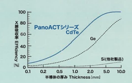 課題解決のために、半導体そのものを多くの他社が採用しているものではなく、上記のCdTe(カドミウムテルライド)半導体センサーを採用することにしました。