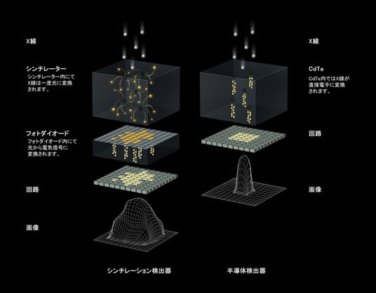 【図2】シンチレーション型とCdTe直接変換型との違い