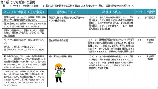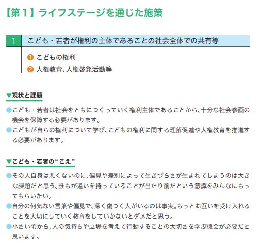 プランの本文を見ていくと、各施策の現状と課題の次に「こども・若者の"こえ"」が列挙されています。