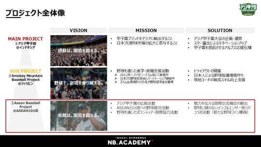 当社は、以下3つのプロジェクトを中心に活動する”海外野球振興協会”です。