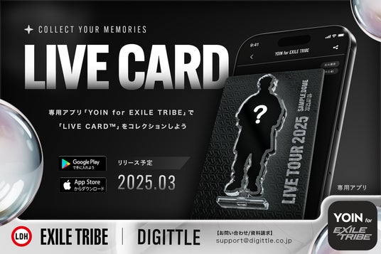 Digittle|EXILE TRIBEのライブにてデジタルグッズ「LIVE CARD(TM)」を販売。25年3月に専用コレクションアプリ「YOIN for EXILE TRIBE」をリリース。